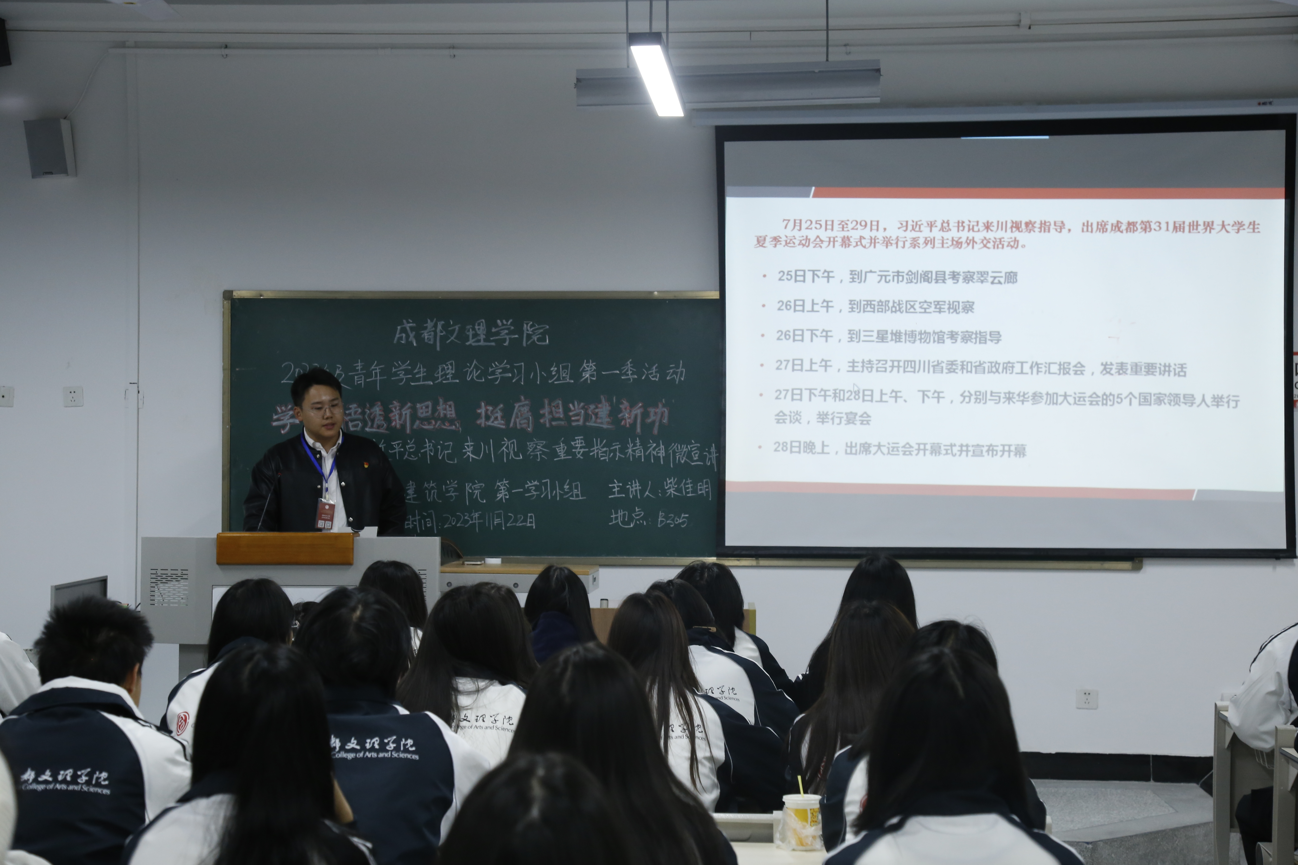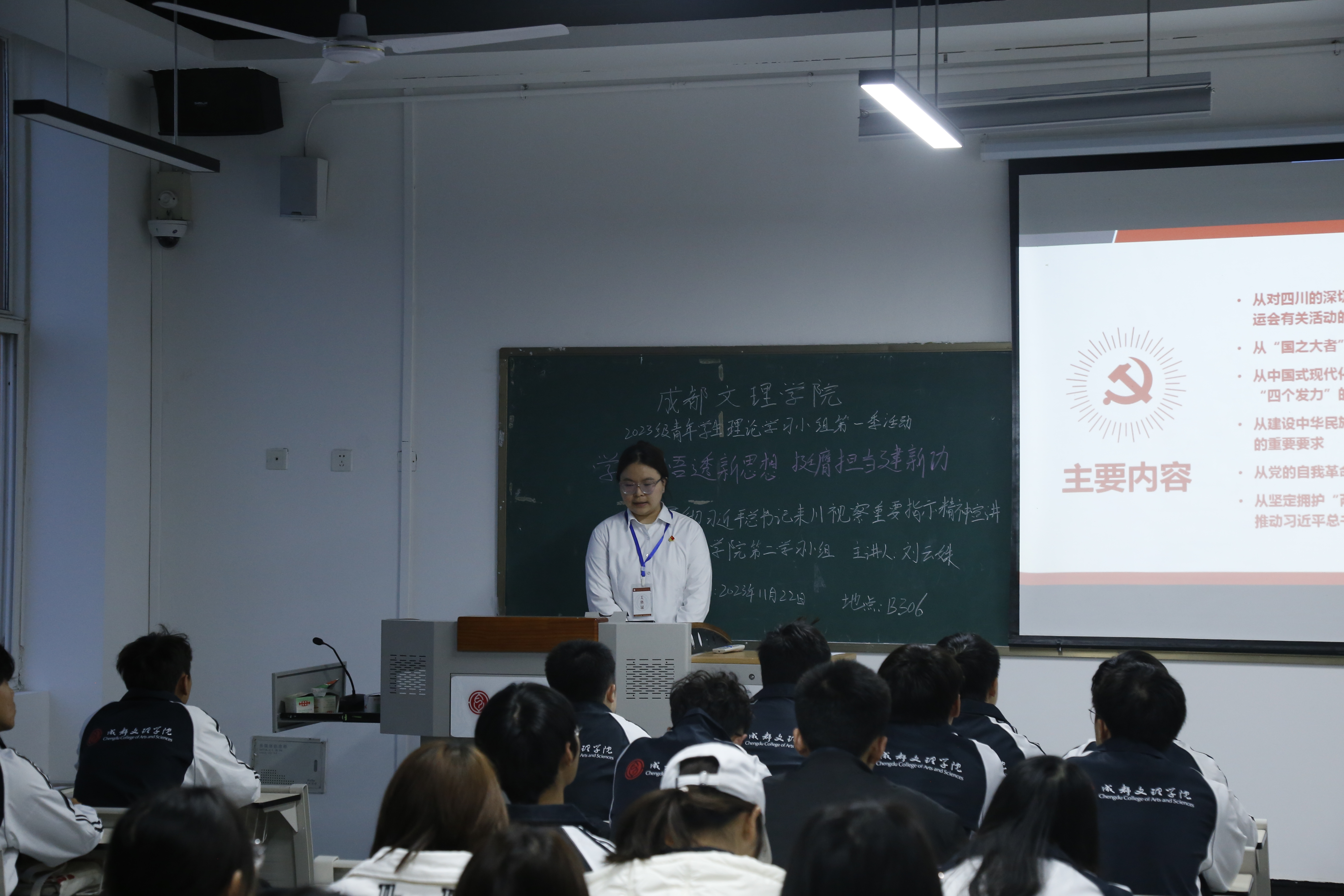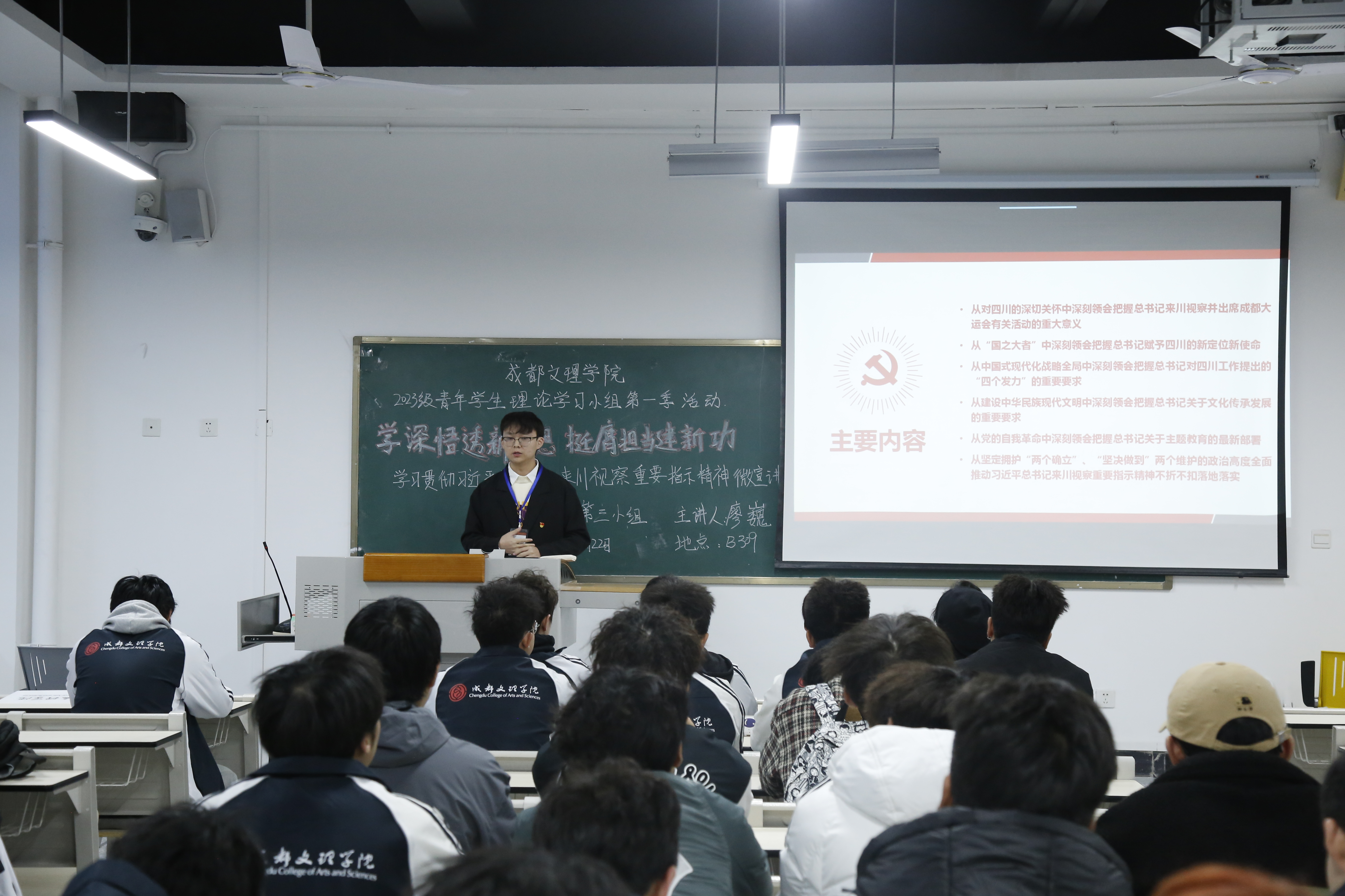 按照学校党委部署,11月22日,太阳成集团tyc714cc党员宣讲团面向全体大一新生开展“学习贯彻习近平总书记来川视察重要指示精神”主题宣讲,学生党员廖巍、刘云姝、柴佳明作为主讲人。