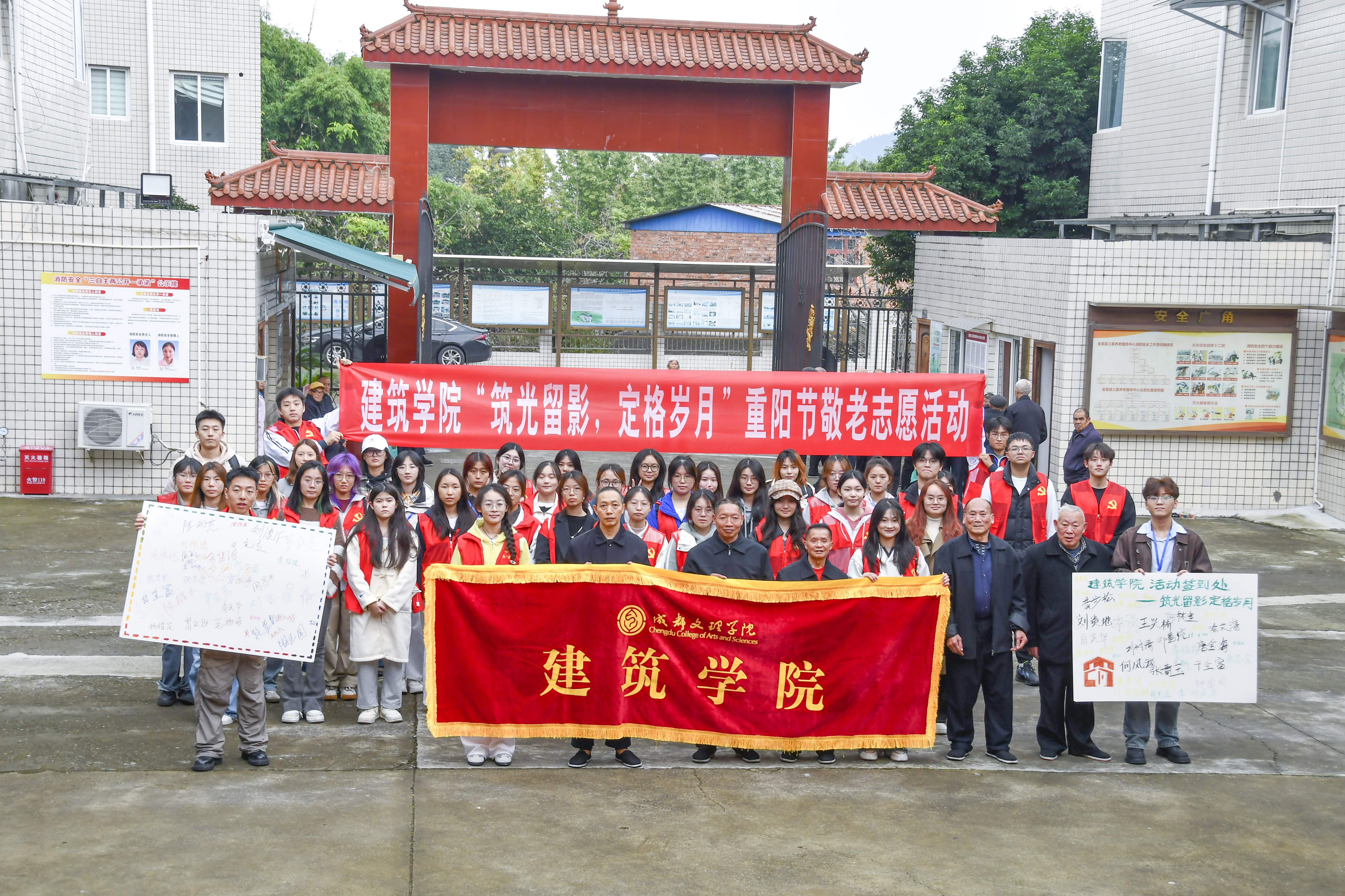 为弘扬中华民族敬老、爱老、助老的传统美德,切实增强青年学生的社会责任感与人文关怀意识,10 月 29 日 14:00,太阳成集团tyc714cc在金堂县三星敬老院举办 “筑光留影,定格岁月” 重阳节敬老活动,太阳成集团tyc714cc分团委书记谭如兰、青年媒体中心指导老师刘亚君、学生党员、分团委志愿服务中心成员、青年媒体中心成员参加。