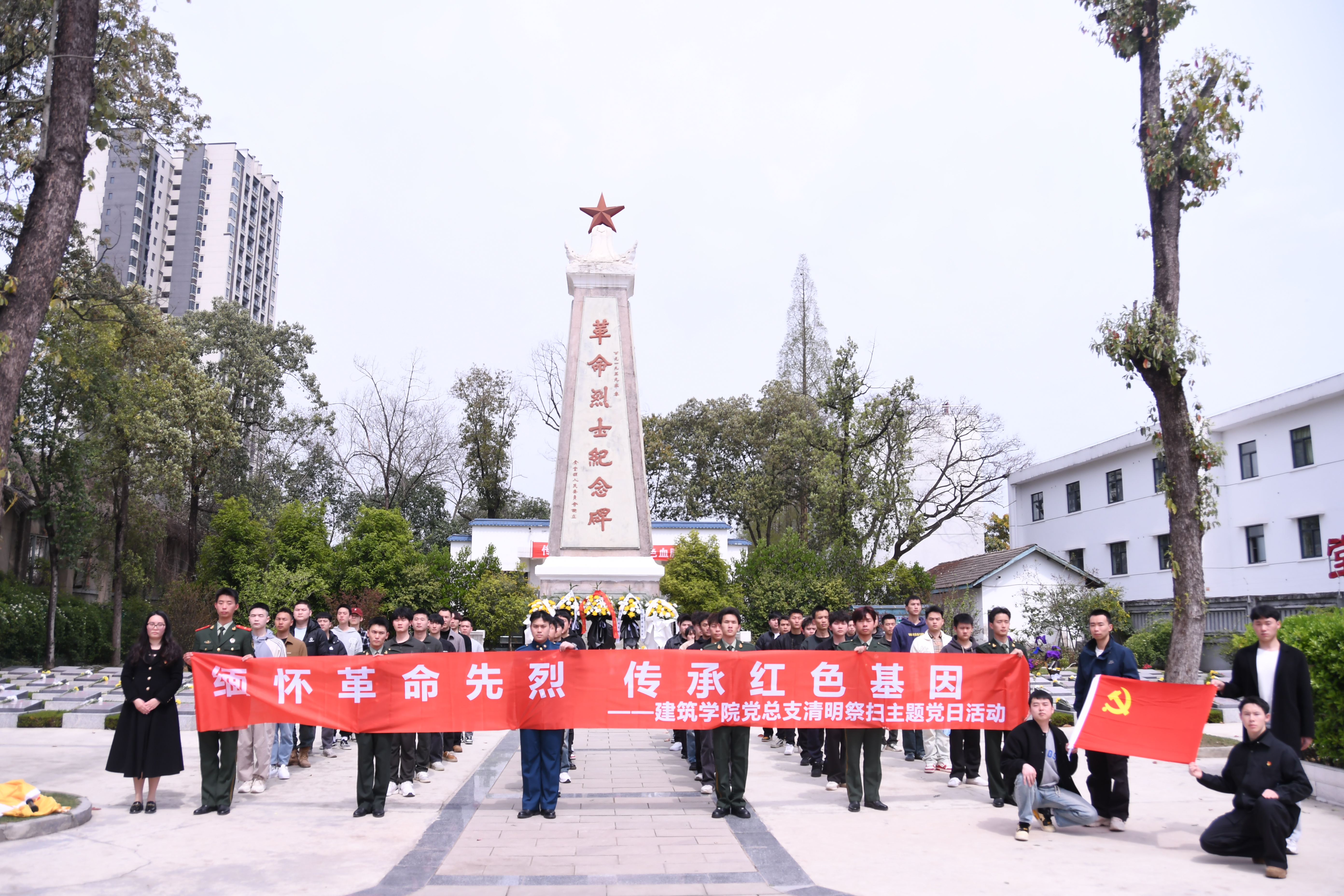 在庄严肃穆的烈士纪念碑前,全体党员列队肃立,齐唱国歌并集体默哀。师生党员重温入党誓词,铿锵誓言回荡陵园。学生代表向烈士纪念碑敬献花篮,全体人员依次献上菊花,并清扫烈士墓碑,以朴素行动表达崇敬之情。