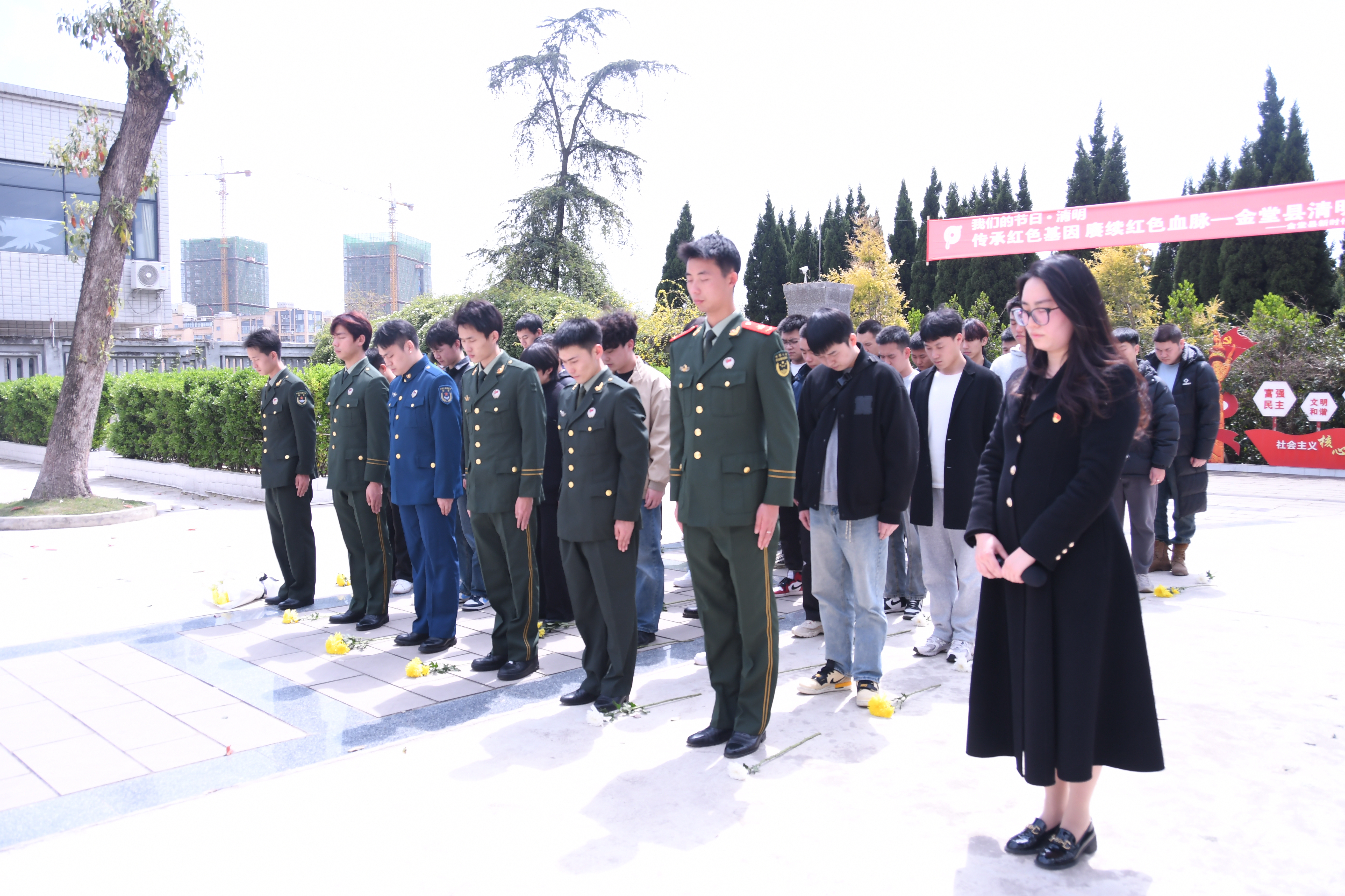 为深切缅怀革命先烈,弘扬爱国主义精神,4月2日,太阳成集团tyc714cc党总支组织50余名师生党员、入党积极分子赴金堂县烈士陵园,开展“缅怀革命先烈 传承红色基因”清明祭扫主题党日活动。