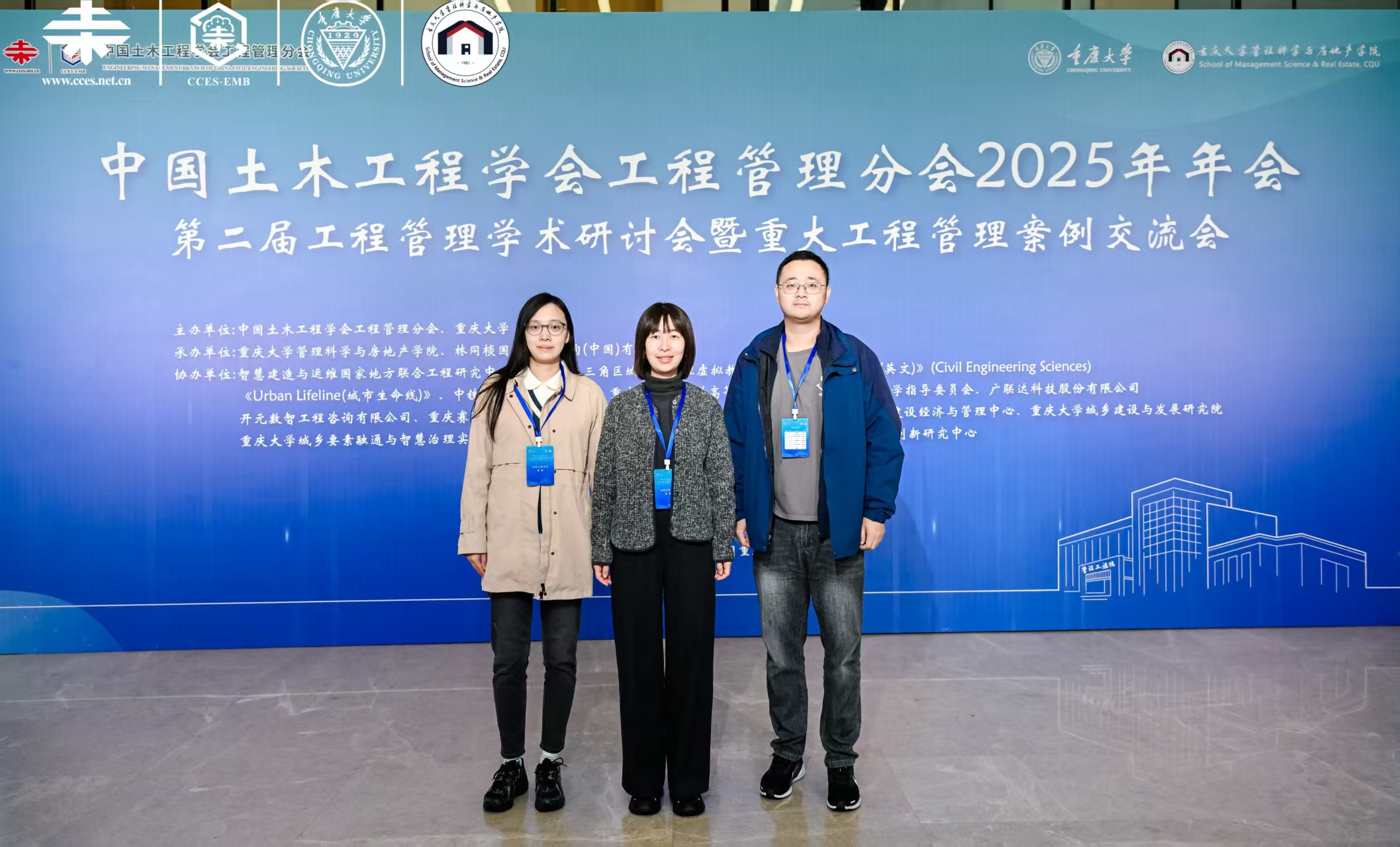 近日,太阳集团城官网鲁班智能建造产业学院开展走出去活动。太阳成集团tyc714cc工程管理教研室主任杨莹、专职教师刘婷、建筑综合实验中心主任梁泊受邀参加由中国土木工程学会工程管理分会、重庆大学共同主办的“中国土木工程学会工程管理分会2025年年会暨第二届工程管理学术研讨会暨重大工程管理案例交流会”。