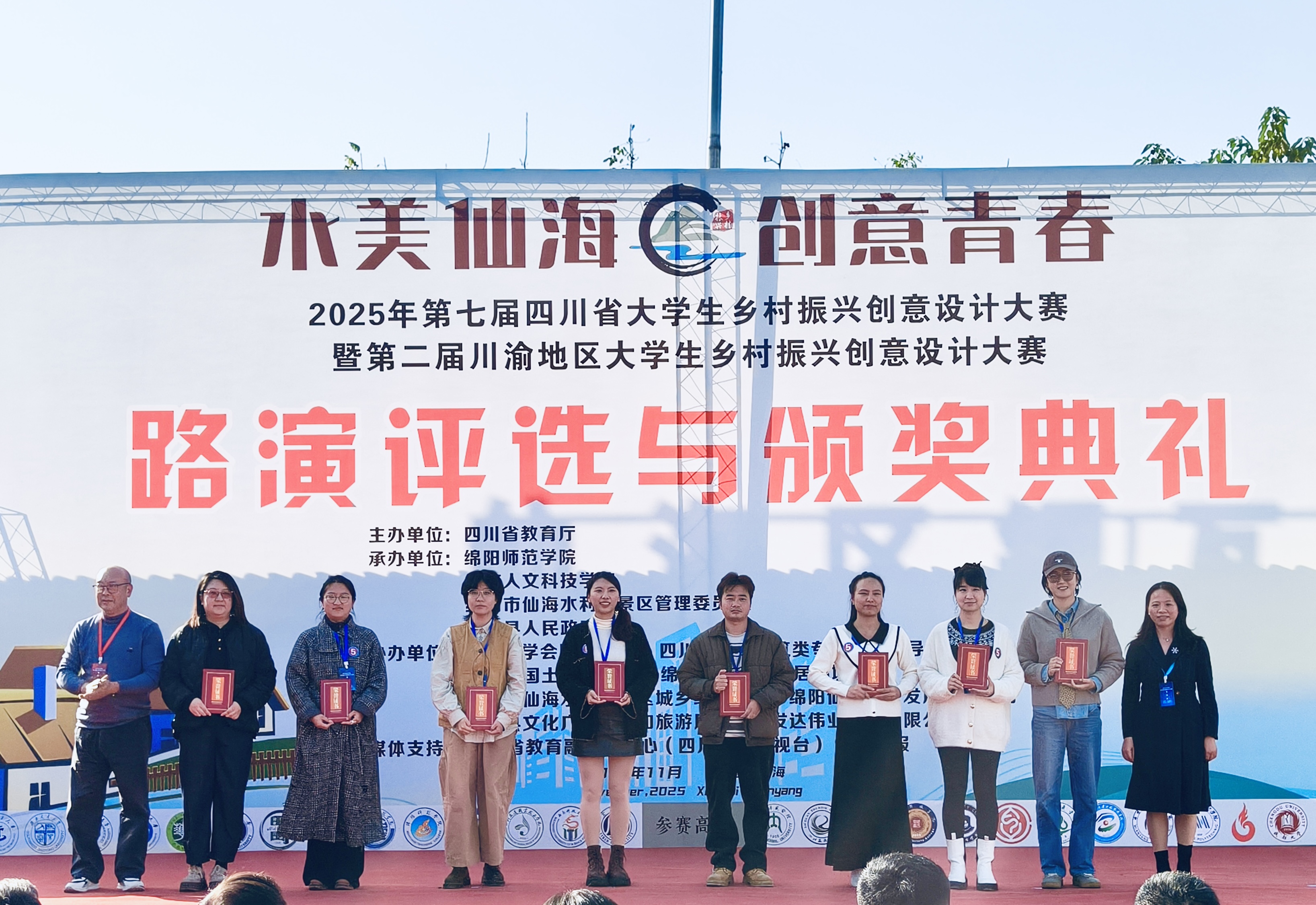 据了解,该活动由四川省教育厅主办,绵阳师范学院、重庆人文科技学院、绵阳市仙海水利风景区管理委员会、三台县人民政府共同承办。本届大赛自4月启动以来,吸引了川渝地区1248支团队、5716名师生参与,参赛作品主题丰富、类型多样,涵盖乡村人居环境规划设计、建筑风貌改造、文化创意设计、数字媒体设计等多个领域。